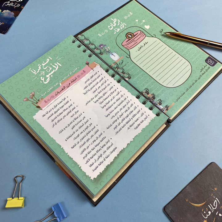 This Arabic weekly planner is designed to help you reflect, plan, and grow across all areas of your life, including religion, health, family, and professional aspects.